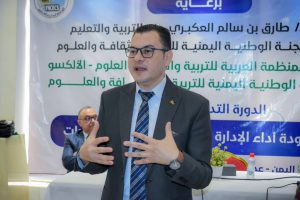 برعاية معالي وزير التربية والتعليم الأستاذ/ طارق بن سالم العكبري رئيس اللجنة الوطنية اليمنية للتربية والثقافة والعلوم، أقيم صباح اليوم في العاصمة عدن دورتان تدريبيتان ناقشت الدورة الأولى التعليم الشامل، في حين كانت الدورة الثانية في مجال جودة اداء الإدارة التربوية في مواجهة الازمات والتي أقامتها اللجنة بدعمٍ من المنظمة العربية للتربية والثقافة والعلوم الألكسو، والتي استُهدف خلالها (60) مشاركاً ومشاركة من قطاع التربية والتعليم بكافة المناطق المحررة وديوان الوزارة، وتستمران لمدة ثلاثة أيام متتالية.